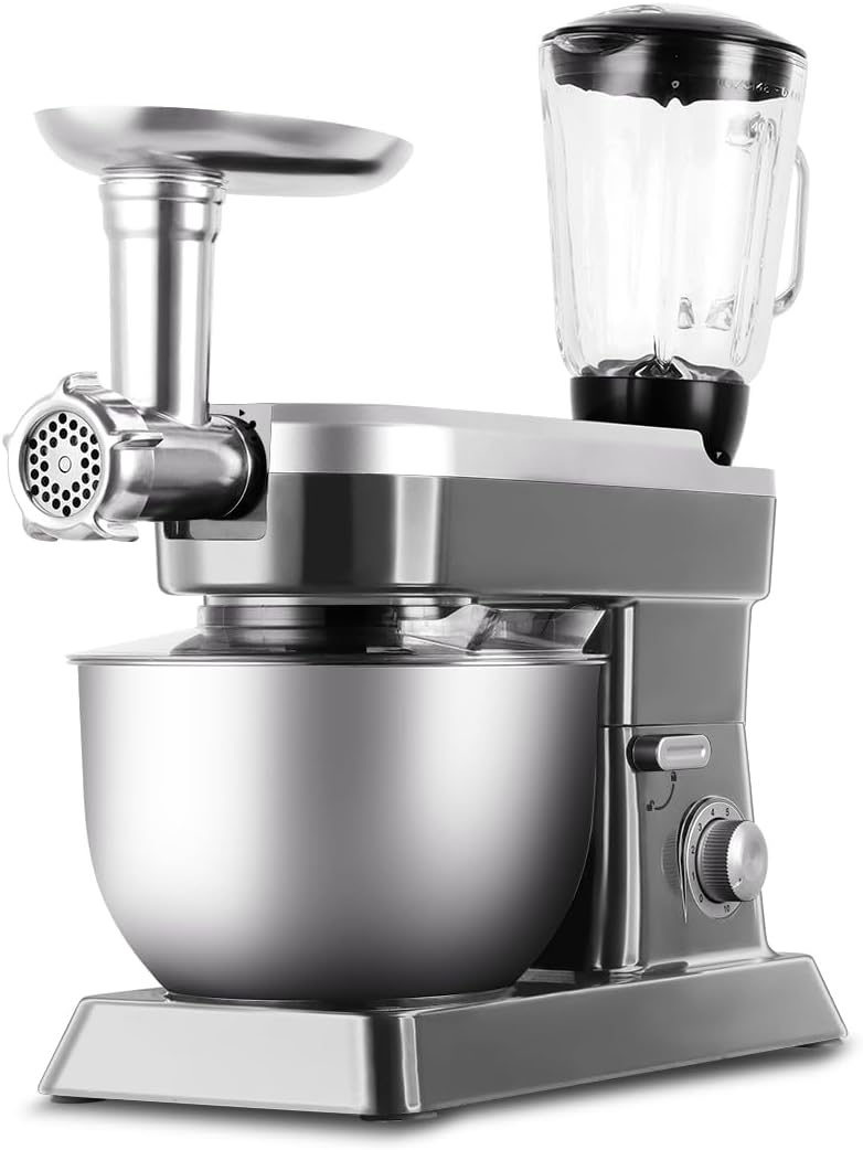 استمتع بوجبة مبهرة مع جهاز محضر الطعام المتكامل 3 في 1، الذي يجمع بين خلطات الخلطات والعجن والقطيع، مما يشكل إعداد وجباتك المفضلة.